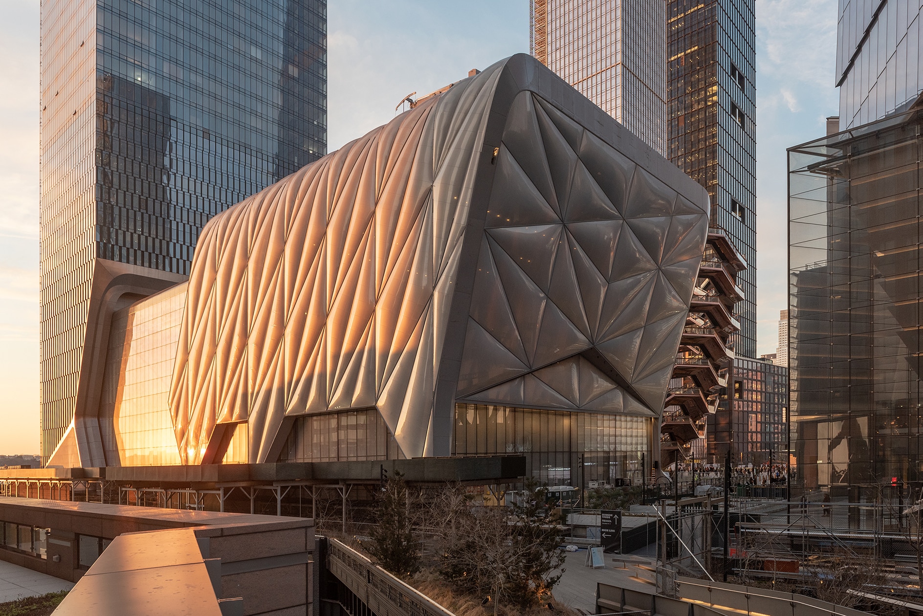 当单元跨度较大,或者载荷较大,以至于ETFE强度无法满足设计要求时,可以采用ETFE结合钢索的方式,其中最简单的是采用单向钢索,这些钢索根据膜的造型可以平行布置或辐射布置。